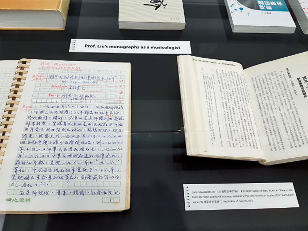 展覽的核心是他傾心鑽研的「中國新音樂史論」,從他早年手稿「歐洲音樂傳入中國,新音樂萌芽期討論」、「抗日戰爭時期的新音樂」,到二○○九年最後修訂版,以及之後出版的《香港音樂史論》等,展品一覽俱全。同時展出的也有他在報章發表的音樂評論手稿,彌足珍貴。
