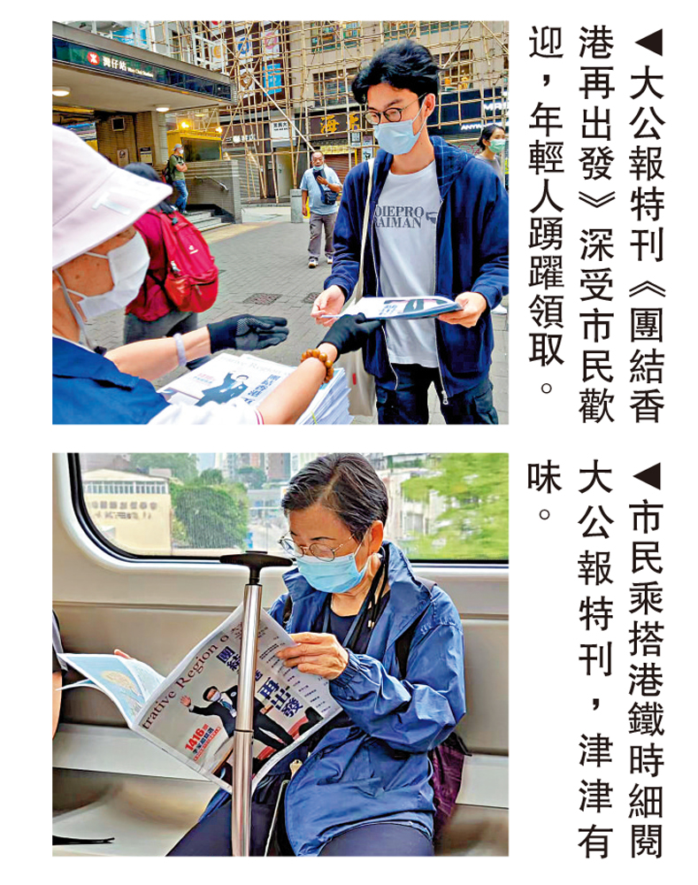 第六任行政長官選舉順利舉行,候選人李家超高票當選。《大公報》、《文匯報》昨日發行特首選舉特刊,受到市民廣泛關注和熱烈歡迎。有市民對記者表示,對李家超寄予厚望,期待新的管治團隊可為香港帶來全新變化。