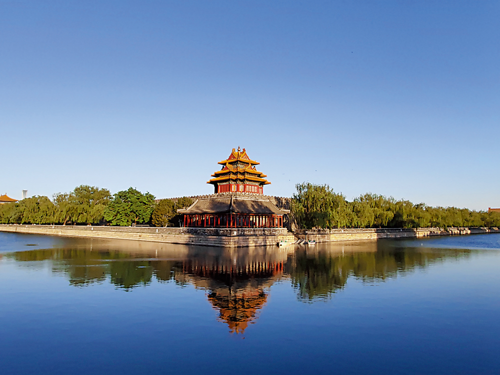 故宮護城河邊,一群人舉着相機在等待最佳時間拍照──角樓夕照是著名的打卡點。將車停放河邊,賞望河柳靜水,倒影如畫,一抹夕陽塗在紅牆金瓦上。不需等待,已是好景。北京人愛搭訕,不時有人打聽我的長相奇特的單車,一位大叔說這車夠拉風的,好騎嗎貴不貴。兩個女孩子跟單車合影,說這車真酷。一位大媽說,我剛才拍您的車也把您拍進去了。我說沒事沒事拍吧。