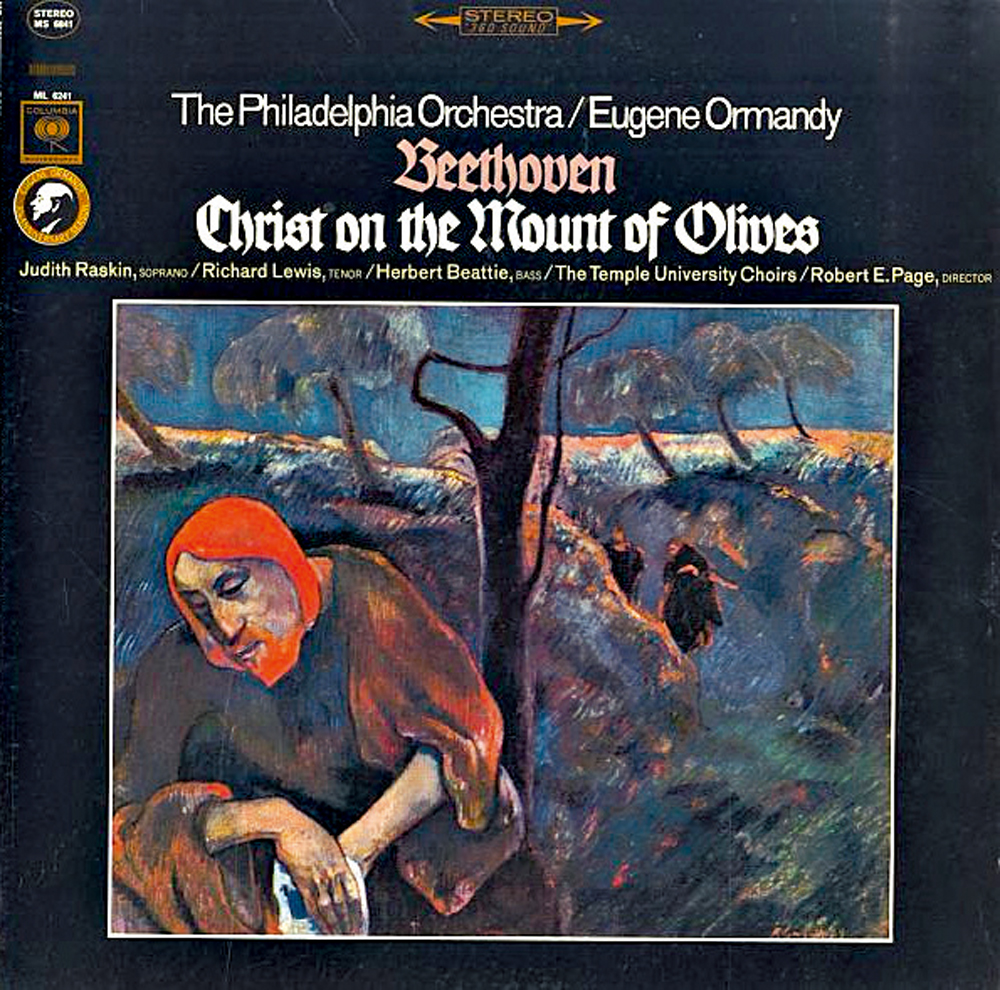 這張由哥倫比亞唱片公司於一九六五年發行的專輯由匈牙利裔美國指揮大師尤金·奧曼迪執棒費城管弦樂團和坎普爾大學合唱團,攜手美國女高音朱迪絲·拉斯金、威爾士男高音理查德·劉易斯和美國男低音赫伯特·比蒂聯袂演繹的由「樂聖」貝多芬譜寫、與高更畫作同名的清唱劇《橄欖山上的基督》。