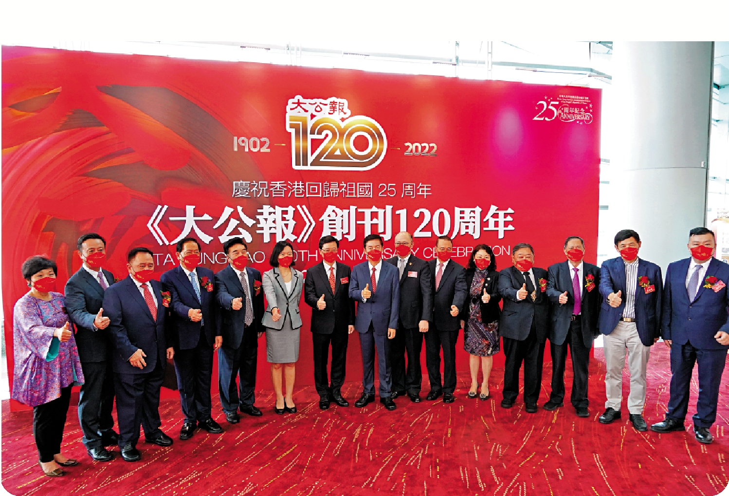 本港各界人士聚首一堂,對《大公報》創刊120周年表達祝賀。他們表示,習近平總書記的賀信體現了他對香港發展的牽掛,表達了對愛國愛港媒體的親切關懷和勉勵,指明了愛國愛港媒體未來的工作方向。各界人士相信,愛國愛港媒體一定不負厚望,繼續維護香港社會繁榮穩定,確保「一國兩制」行穩致遠,講好中國故事,為香港由治及興作出新貢獻。\大公報記者 常彧璠(文) 攝影組(圖)