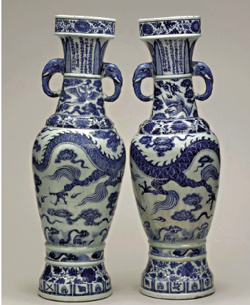 到大英博物館的中國人,大都要去中國館看中國明清兩代最傑出、最高雅、最珍貴、也最難得的青花瓷器,皆兩代皇宮御用的,堪稱件件皆無價之寶。其中最突出的是一對元青花雲龍紋的象耳瓶。