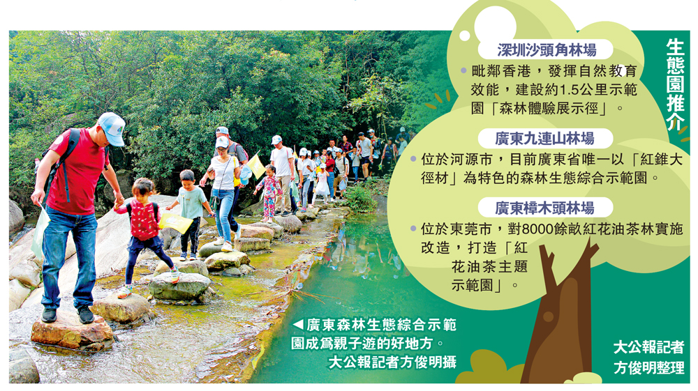 粵港澳大灣區優質生活圈建設進一步完善。大公報記者21日從廣東省林業局獲悉,目前全省已有20個「省級森林生態綜合示範園」建成並面向公眾開放,成為民眾生態休閒遊的好去處。而20個示範園在集森林旅遊、森林康養、自然教育、科技示範、林下經濟等於一體的同時又各具特色,助建粵港澳大灣區優質生活圈。其中,毗鄰香港的深圳沙頭角林場便發揮自然教育效能,建設約1.5公里的「森林體驗展示徑」;而廣東首個國家級森林公園「廣東梧桐山國家森林公園」將成為灣區閃亮的生態名片。\大公報記者 方俊明廣州報道
