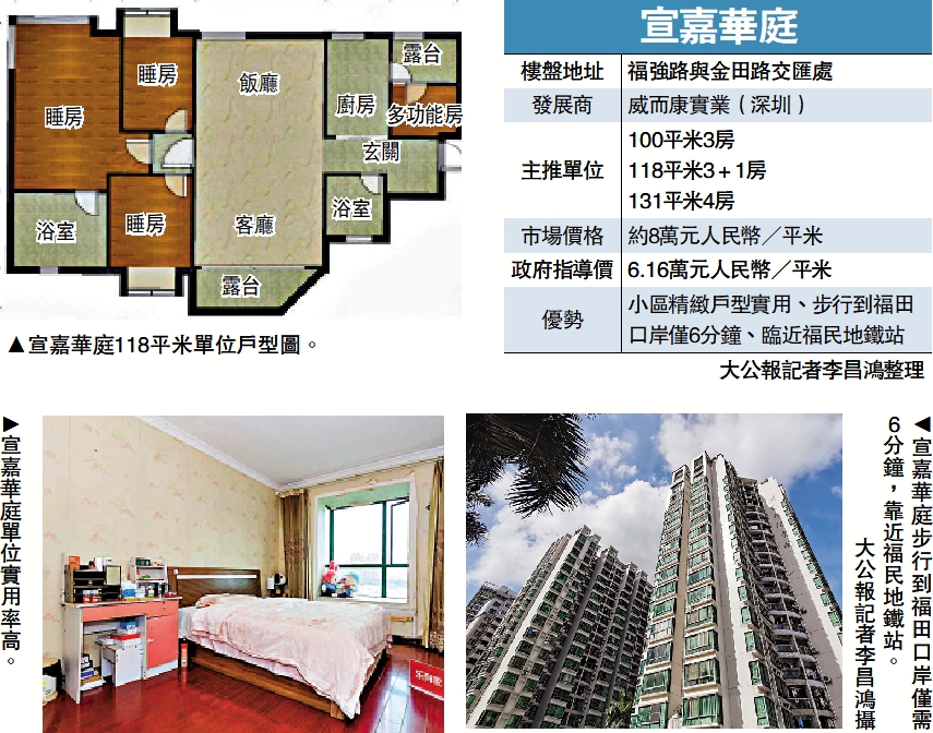 在宣嘉華庭的住戶中,香港人與外籍人士佔大多數,小區最大優勢是靠近福田口岸,步行僅需6分鐘,離福民地鐵站步行約4、5分鐘。小區市場價為每平米8萬多元(人民幣,下同),而政府指導價為6.16萬元。