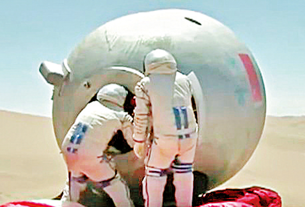 2018年,在巴丹吉林沙漠參加48小時沙漠生存訓練是蔡旭哲印象深刻的經歷之一。當蔡旭哲所在的乘組進入沙漠時,最高氣溫達到40多攝氏度。接着,又遭遇了沙塵暴,颳起了8級大風,第二天又趕上大雨。到了晚上,氣溫一下子驟降到零度以下。第三天,他們負重徒步5公里。短短48小時像是經歷了春夏秋冬四季。