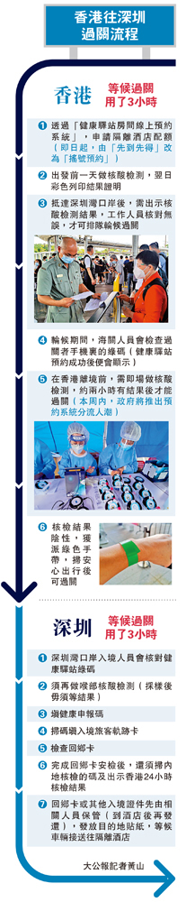 5 在香港離境前,需即場做核酸檢測,約兩小時有結果後才能過關(本周內,政府將推出預約系統分流人潮)