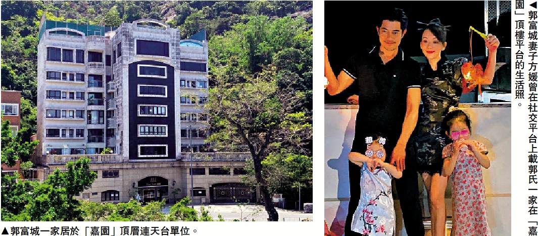 被譽為星級豪宅的「嘉園」,住客除了郭富城,還有余德丞及周秀娜等城中名人。郭富城與太太方媛、兩名女兒及外父外母原居於大廈頂層連天台大單位,由於該單位正進行裝修,郭遂到租予外父外母的一樓單位暫住。