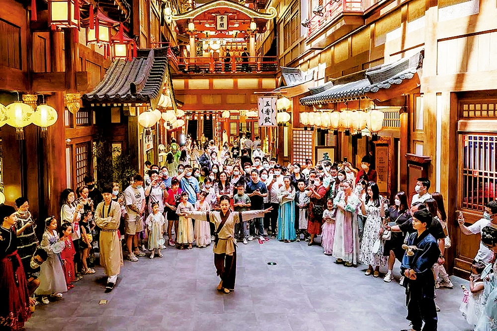 大唐不夜城是另一消暑納涼之地。「入夏以來,我每隔一天便會來這裏。」西安市民張小姐很喜歡《尋夢·芙蓉裏》,「唐朝仕女從《簪花仕女圖》和《觀鳥捕蟬圖》兩幅名畫中走出,與遊客一起沉浸式感受大唐趣味生活。」張小姐說,在這裏感到整個世界都是清爽的。 大公報記者 李陽波