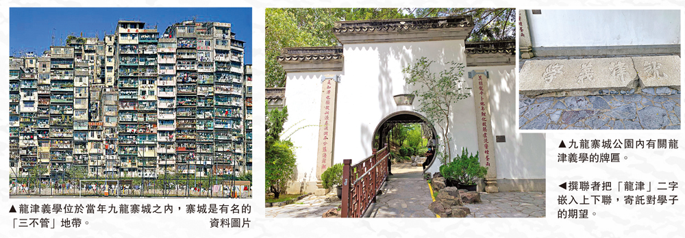 1984年12月,中英兩國簽訂《中英聯合聲明》,確認中華人民共和國政府於1997年7月1日恢復對香港行使主權,英國政府並於該日將香港交還中國。1987年1月14日,中國政府與港英政府達成協議,清拆九龍寨城,並於原址興建公園,盡量保留寨城一些原有的建築物及特色。1995年8月寨城公園竣工,只留下衙門、石額、牆基、石樑、柱礎、古炮等。其中龍津義學的門聯得以保留下來: