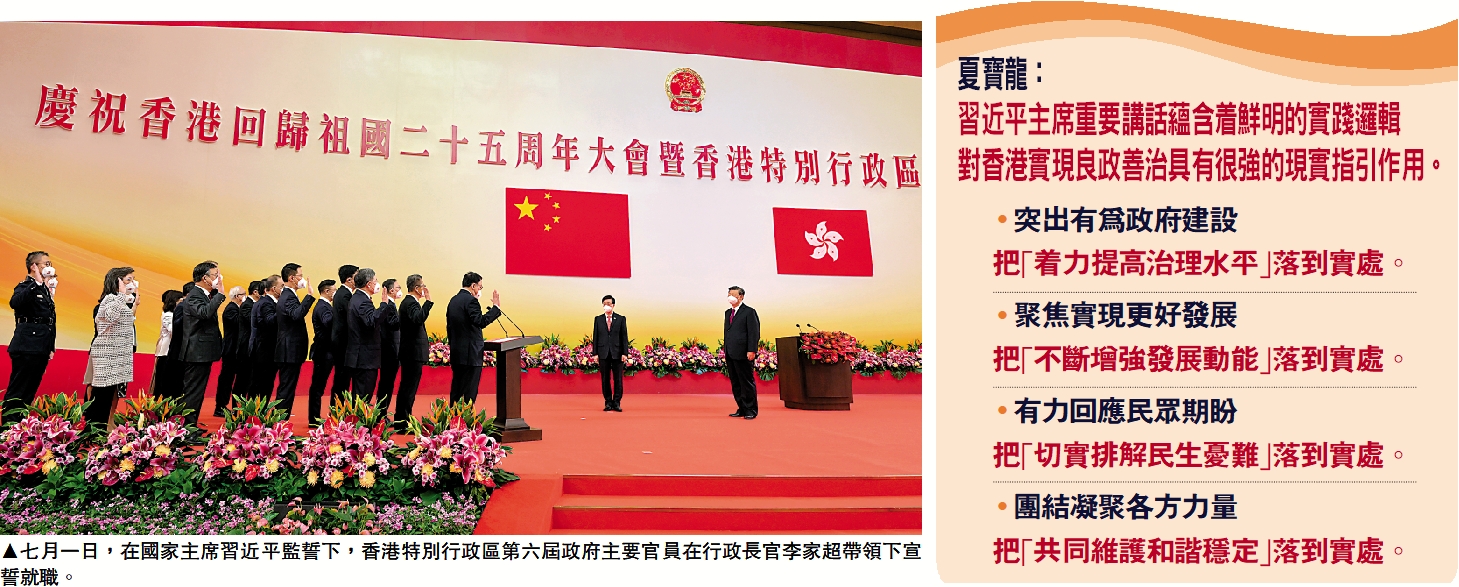 李家超在會後表示,研討會讓所有人更了解習近平主席的重要講話內容,對「一國兩制」的重要邏輯及理論有更深的體會及認識。習近平主席提出的「四個必須」及「四點希望」,為特區政府未來五年施政提出大方向及指導。特區政府正在落實不同方面措施,讓政策局有更清晰的權責;未來會全力重視青年發展,為他們實現夢想創造機會。\大公報記者 義昊