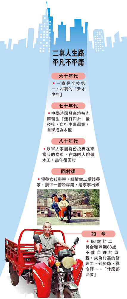 •66歲的二舅全職照顧88歲不能自理的母親,成為村裏的修理工、針灸師、算命師……「什麼都能做」