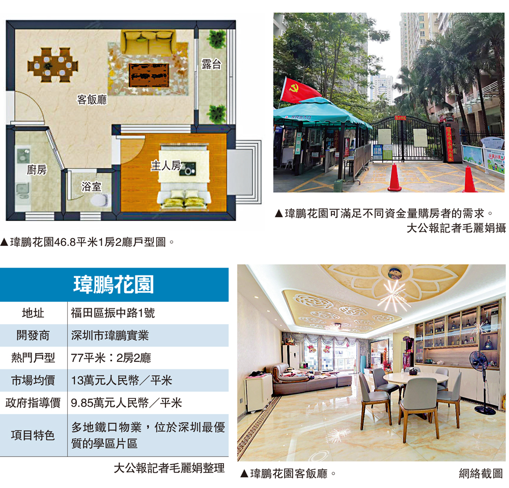 瑋鵬花園建於2003年,身處深圳的老牌中心區羅湖蔡屋圍金融圈和福田華強北商圈,生活、購物均十分便利。樓盤戶型豐富,有1房2廳的46.8平米戶型,有77至93平米的2房2廳戶型,有100多平米的3房戶型,也有166平米的4房2廳戶型,滿足不同資金量、對學區要求較高的購房者的需求。