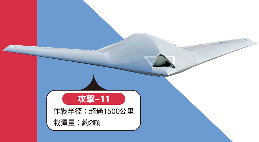 2012年以來,軍用無人機的發展進入了空前的快車道。2013年11月首飛的攻擊-11,是世界上第一款正式服役的飛翼布局高速隱身無人攻擊機,作戰半徑超過1500公里,續航時間超6個小時,載彈量約為2噸。利用自身高速、隱身優勢,化身「隱身轟炸機」,在防區外對敵目標實施精確打擊,破壞防空系統。