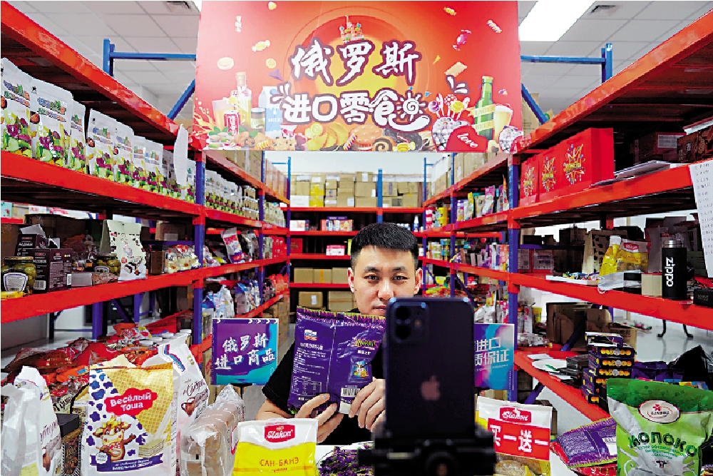 疫情來襲,但中國消費者對於外貿商品的需求依然巨大。紫皮糖、無水冰淇淋(雪糕)、「老奶奶面膜」……乘着互聯網和短視頻的東風,越來越多俄羅斯零食和日用雜貨逐漸為中國消費者熟知,並通過電商渠道走進人們的生活。劉雅樂藉機做起直播生意,2020年,他在多個短視頻平台收穫粉絲近200萬,第二年又創辦了電商公司、傳媒公司,將俄羅斯商品網絡「帶貨」給中國消費者。