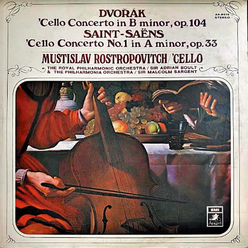 值此大師冥壽之際,分享一張由日本EMI/Angel唱片公司發行、收錄兩首由二十世紀偉大的大提琴演奏家穆斯季斯拉夫·羅斯特羅波維奇演繹的大提琴協奏曲。一首是他攜手指揮家阿德里安·博爾特爵士和英國皇家愛樂樂團演繹的德沃夏克名曲,另一首則是他與指揮家馬爾科姆·薩金特和費城管弦樂團合作獻上的聖·桑《A小調第一號大提琴協奏曲》。專輯封面選擇了巴洛克時期著名的「烏德勒支卡拉瓦喬派」成員之一赫里特·范·洪特霍斯特創作的《音樂會》(偷護身符的賊)。