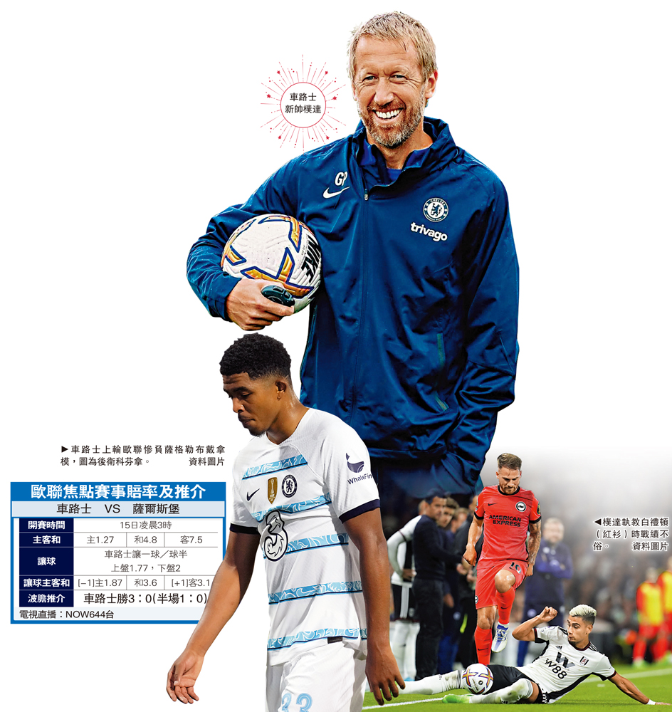 保希利入主百日即怒炒功勳主帥杜切爾,火速與白禮頓達成共識而招徠了樸達,原本上周六英超「倫敦打吡戰」作客富咸是其「地標戰」,但因英女王離世比賽延期,令明晨歐聯主場鬥奧地利薩爾斯堡成為該名47歲英國領隊的首戰。這亦可算是天意,皆因被炒的杜切爾正正帶領球隊勇奪前季歐聯冠軍,如今樸達由歐聯起步,也許會增添多一分無形壓力,更甚者是在史丹福橋主場出兵,球迷雖沒有對杜切爾被炒感不悅,若樸達首戰稍有差池,前路將會更難行。