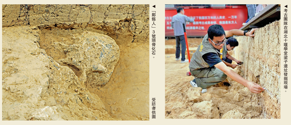 國家文物局副局長關強在28日舉行的「考古中國」重大項目發布會上表示,湖北十堰學堂梁子遺址新發現1具古人類頭骨化石——「鄖縣人」3號頭骨化石。這是迄今歐亞內陸發現的同時代最為完整的直立人頭骨化石,為探討直立人(能製造工具和直立行走的人類)演化及其在中國乃至東亞地區起源與發展提供了重要證據。專家認為,「鄖縣人」3號頭骨化石實證了中國百萬年的人類史。與其伴隨出土的,還有大量動物化石和石製品,可判斷「鄖縣人」已是嫻熟的工具製作者和狩獵者。\大公報記者 江鑫嫻北京報道