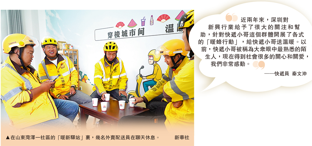 近年來,隨着勞動者擇業觀念變化、企業用工方式多樣,特別是新業態新模式的加快發展,靈活就業形式不斷湧現,日益成為內地新型就業的主流趨勢之一。秦文沖是深圳千千萬萬快遞小哥中的一員,他曾是一名軍人,參加過反恐維穩,抗洪搶險,退伍後放棄了家鄉「鐵飯碗」的工作,南下深圳成為一名快遞小哥。在客戶眼中,他是最有責任心的快遞人,在同事眼中,他是幹起活來闖勁十足的「沖哥」。一次「雨中救人」的經歷讓他收穫了社會的肯定,各種榮譽紛至沓來,他卻依然堅守在工作一線,用奮鬥實現自己的夢想。\大公報記者 石華