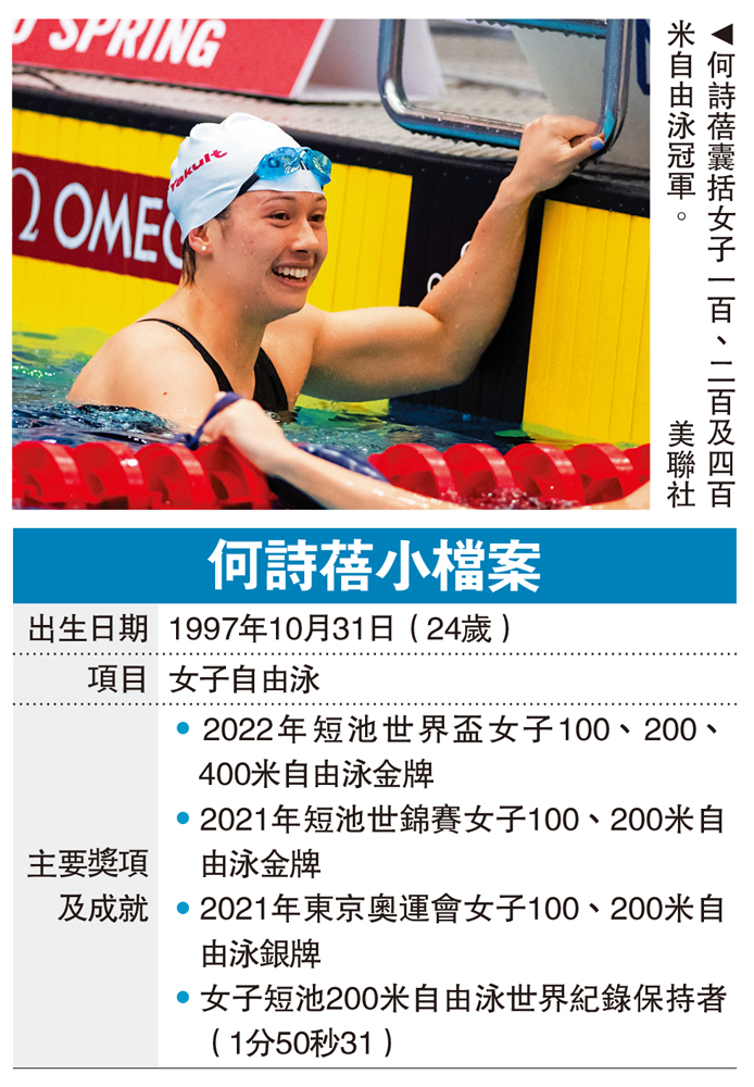 •2022年短池世界盃女子100、200、400米自由泳金牌