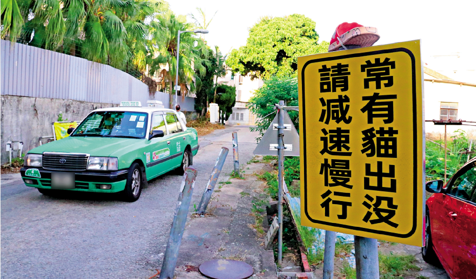 大公報記者日前在上水坑頭村找到豎立路牌的歐陽先生,對方指村中常有貓出沒,因該段路晚上照明不足,之前曾發生過多次貓隻被車輛輾過的意外,路牌是由唐妹特意在「淘寶」定製,並和家人掛在這裏,目的提醒司機減速留意,路牌已設置約半年,未想到引起網民關注和爆紅點讚。