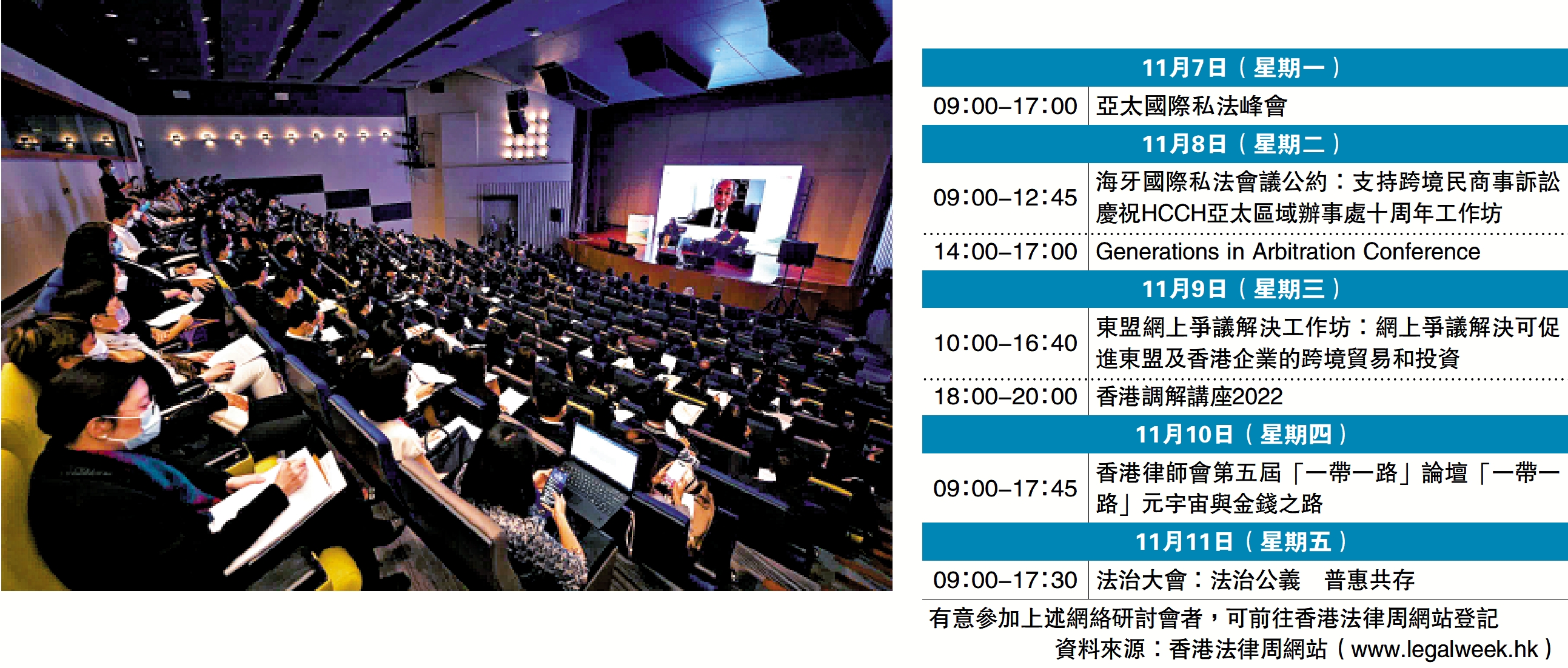 「香港法律周」是律政司年度旗艦項目。在今日起一連五日的活動中,國際法律界重磅人物將就國際公約、爭議解決發展趨勢、新興法律科技、「一帶一路」合作等議題分享見解。