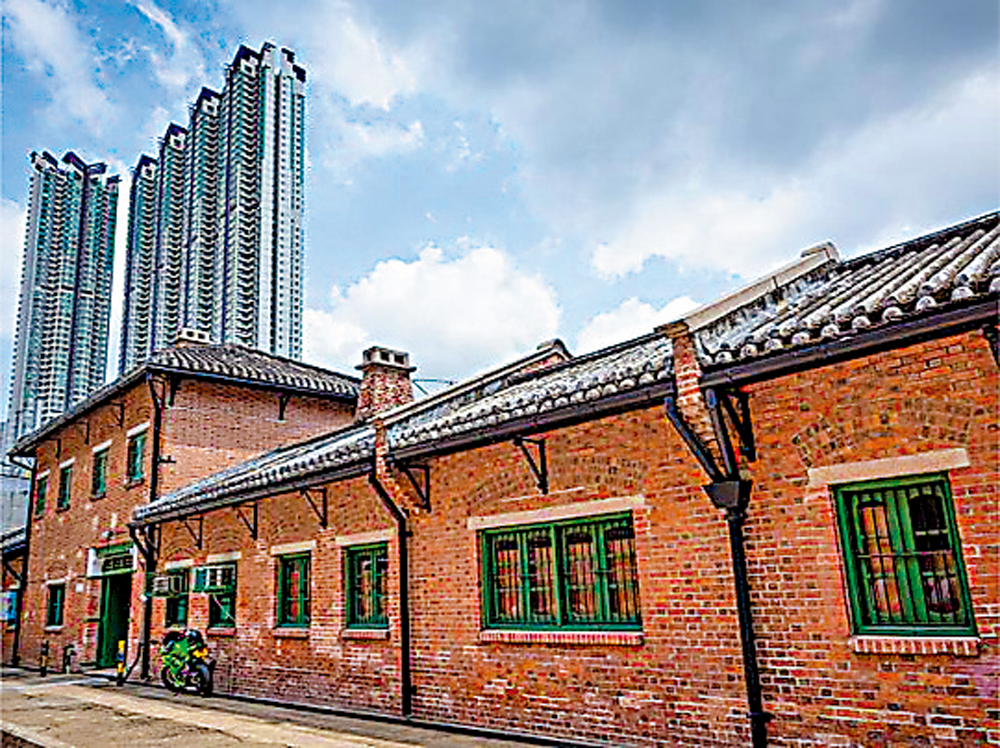 走近細觀,便發現它其實混合了中西建築之特色。紅磚平房具二十世紀初西方市集之布局、紅磚牆透着維多利亞的風格,鋪瓦尖頂與寬闊懸挑屋檐又非常傳統中式,磚砌高煙囱、拱形木製門窗、綠色窗框、墨黑鑄鐵柱、下水管,通花鐵欄裝飾的大門,又不失工藝美術建築之痕,不愧為香港僅存之特色歷史建築群。令這座本與藝術毫不沾邊的院落,成為文青打卡之地。