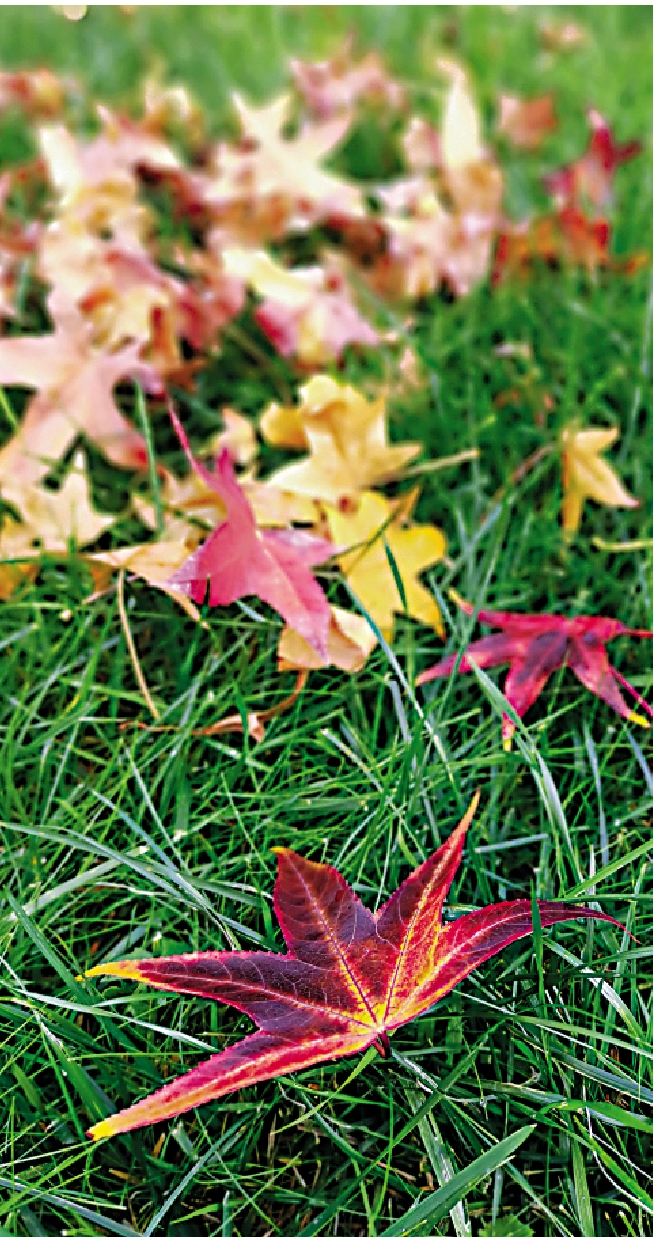 楓香樹葉子已熟透,風雨一過,落葉蕭蕭,比雨點還要密。走過去,腳下沙沙作響。隨便一掃,一大堆彩色「垃圾」,怕是沒有比落葉更漂亮的「垃圾」了。當然也不願把落葉稱為「垃圾」、成為垃圾,庭院小徑的落葉就任其一層一層堆砌,陽光斜照,角落也隨之明艷了。