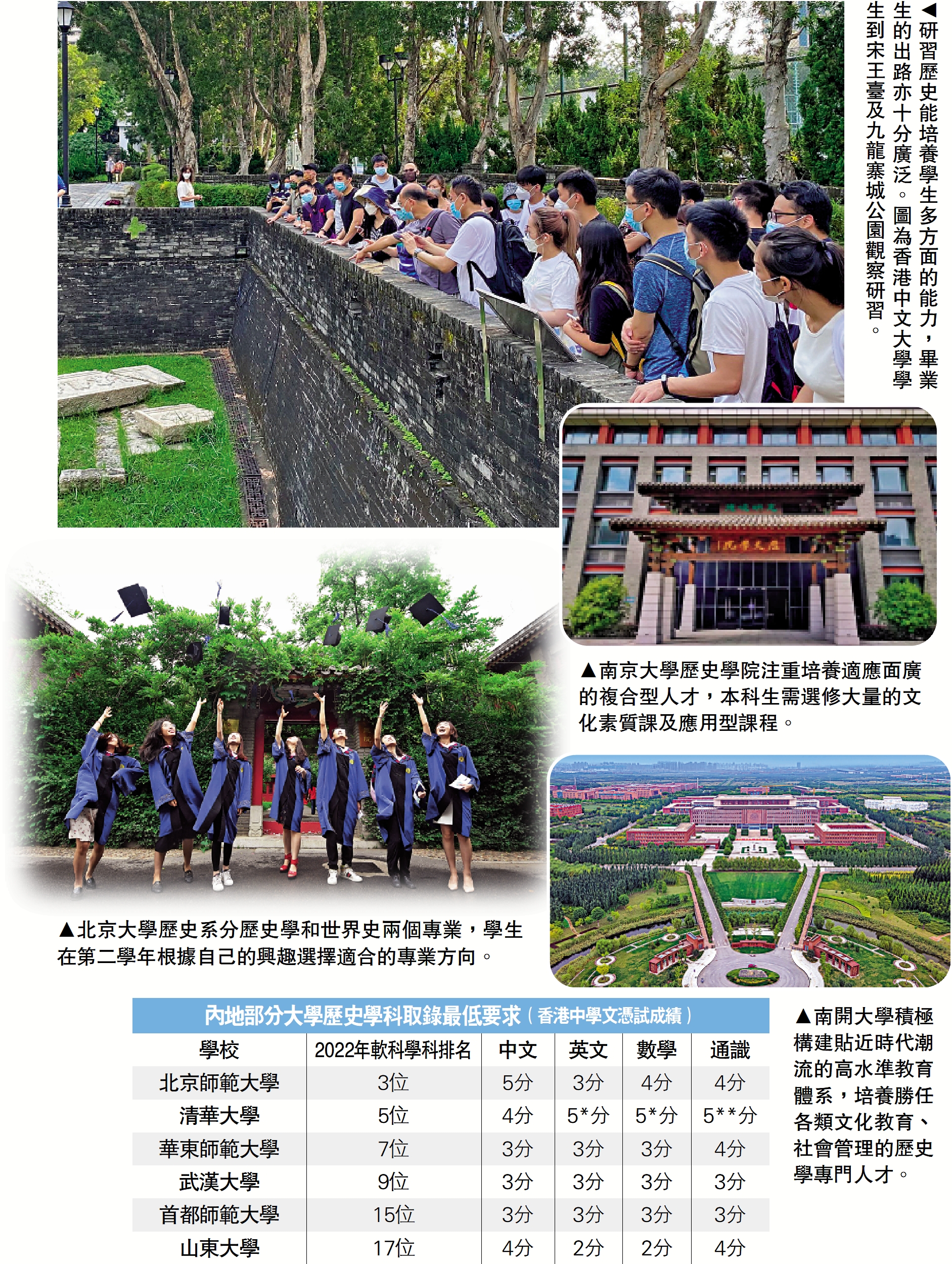 歷史學是去年港生報讀內地高校的熱門專業之一,中華民族文化源遠流長,內地的高校不僅有悠久的校園歷史,更富有濃厚的歷史文化底蘊,為學生創造了研習歷史的絕佳環境。今期《大公報》挑選了北京大學、南京大學和南開大學三所高校,供同學們參考。\大公報記者 蘇薇