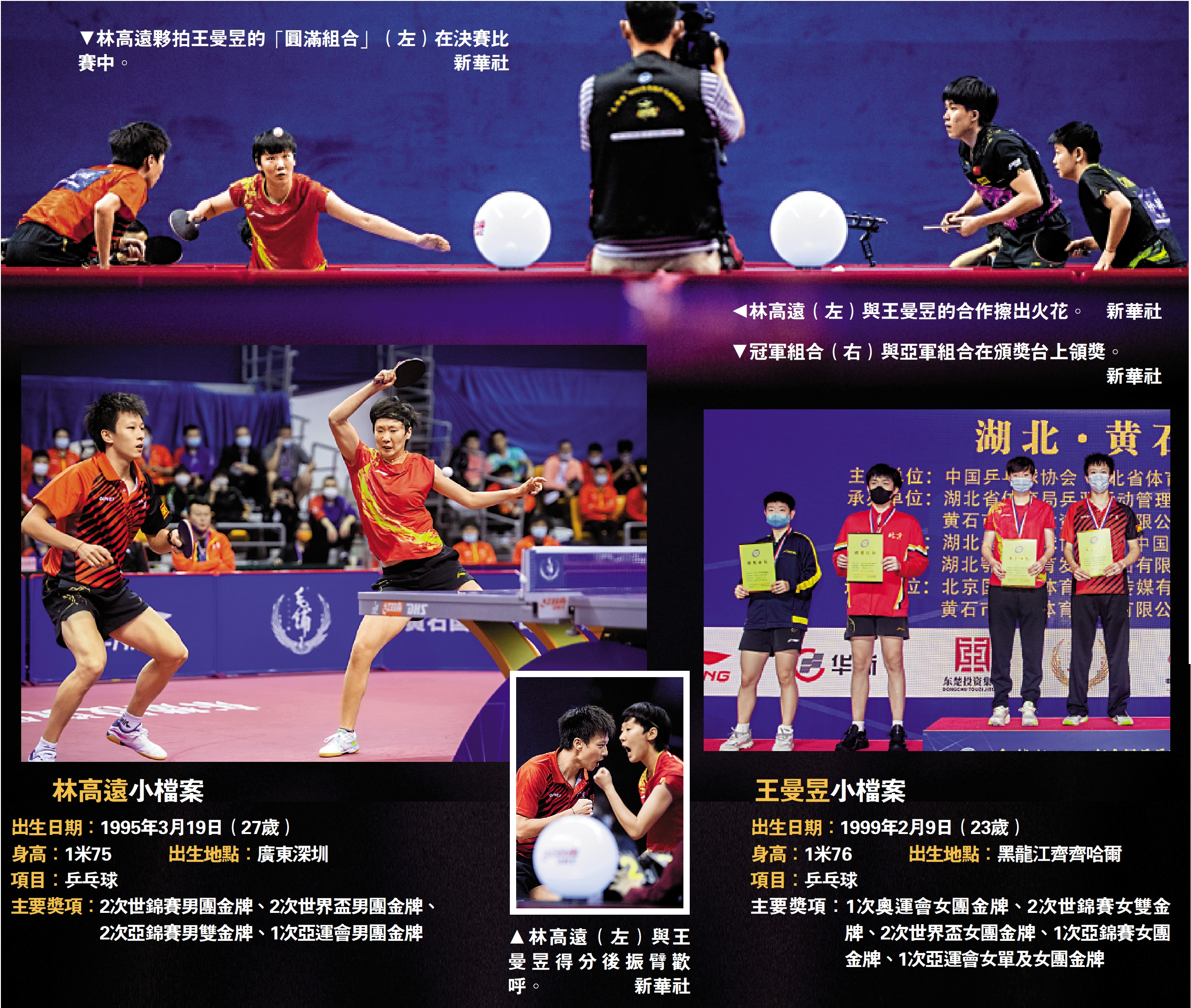 兩對組合均為一日雙賽,在準決賽中,林高遠/王曼昱、王楚欽/孫穎莎都以4:0橫掃對手,晉級決賽。