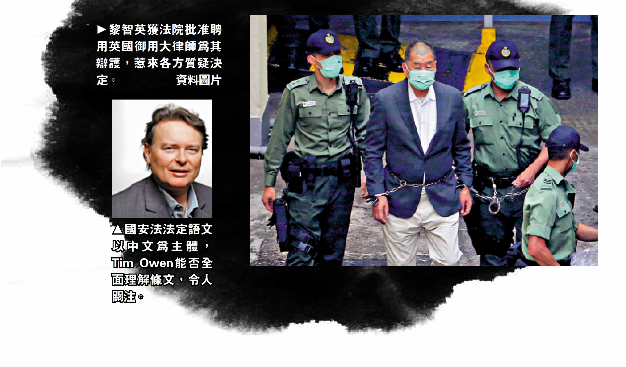 亂港黑手、壹傳媒創辦人黎智英被控串謀勾結外國勢力危害國家安全等罪,上訴庭日前駁回律政司的上訴,繼續批准英國大律師Tim Owen代表黎智英出庭抗辯,此事引起香港社會強烈回響。多名政界及法律界人士質疑,串謀勾結外國勢力的案件竟可由外國大律師代表出席,形容其決定和理由都很荒誕,黎智英涉違反國安法,案件本身具有很強的香港本地元素,應該首先考慮本地的大律師。\大公報記者 龔學鳴