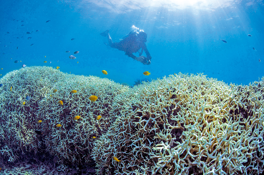 大堡礁由約3000個獨立珊瑚礁組成,沿澳洲東北海岸延伸超過2300公里,覆蓋面積34.8萬平方公里,是1500多種魚類和400多種硬珊瑚的家園,被視為世界上生物多樣性最為豐富的生態系統之一。全球暖化造成的海水溫度升高、海洋酸化,令大堡礁面臨着大規模白化的危機。過去30年來,大堡礁超過98%的珊瑚至少經歷一次白化。