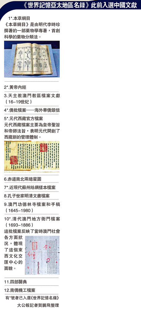 有*號者已入選《世界記憶名錄》