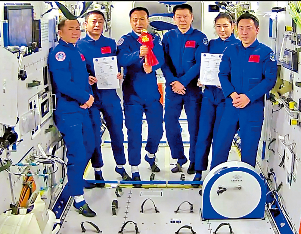 【大公報訊】記者劉凝哲北京報道:「經過近三天的共同生活工作,我們神舟十四號乘組將空間站所有工作交接完畢」,神十四乘組指令長陳冬說。「我代表神舟十五號,已經過確認,可以簽字」,神十五乘組指令長費俊龍說。兩個乘組隨後完成了中國空間站歷史上首次在軌交接,費俊龍從陳冬手中接過了中國空間站鑰匙。至此,中國空間站正式開啟長期有人駐留模式。史上「最繁忙乘組」神十四號航天員陳冬、劉洋、蔡旭哲即將踏上歸途,預計在今日(4日)晚間返回東風着陸場。