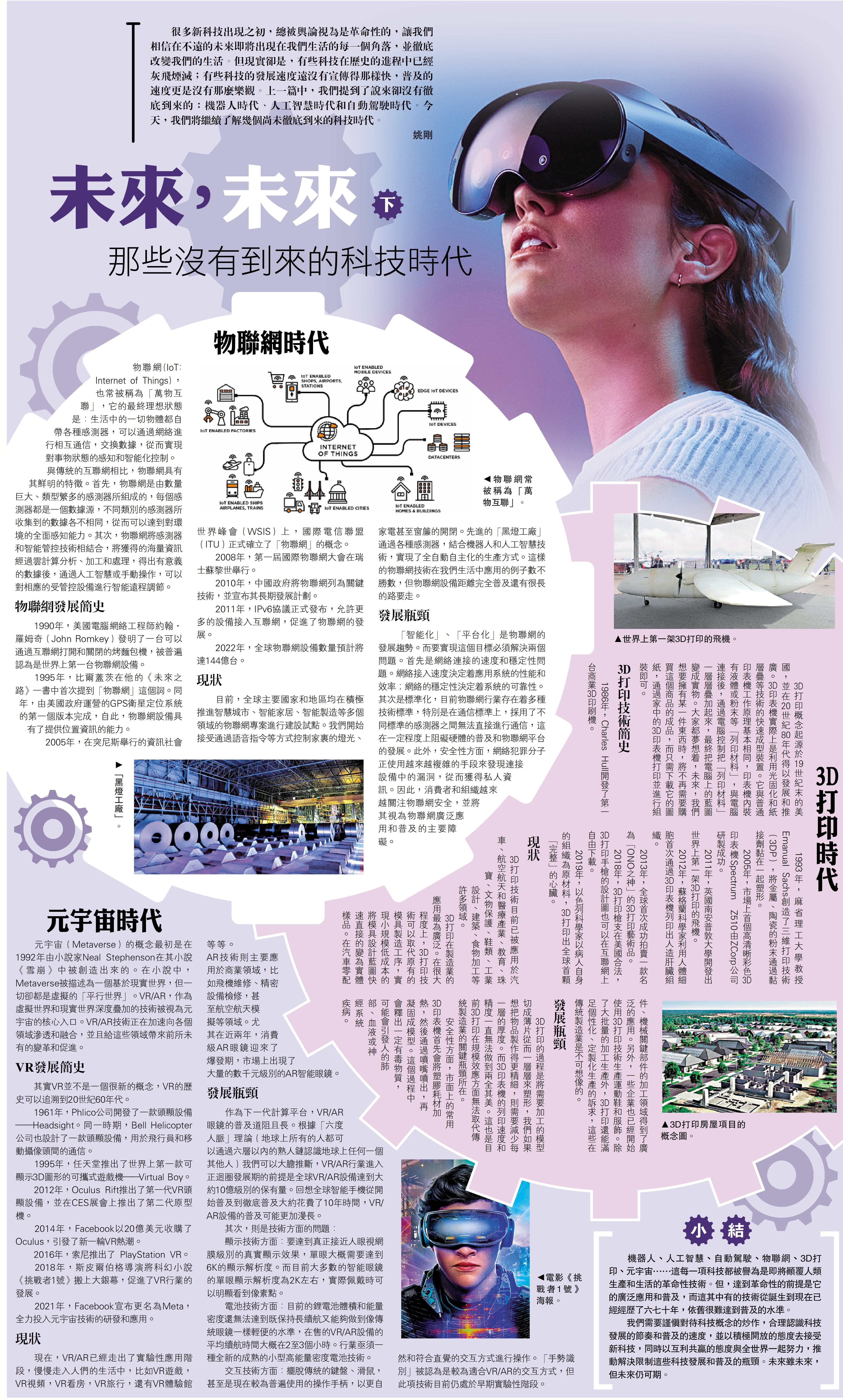 很多新科技出現之初,總被輿論視為是革命性的,讓我們相信在不遠的未來即將出現在我們生活的每一個角落,並徹底改變我們的生活。但現實卻是,有些科技在歷史的進程中已經灰飛煙滅;有些科技的發展速度遠沒有宣傳得那樣快,普及的速度更是沒有那麼樂觀。上一篇中,我們提到了說來卻沒有徹底到來的:機器人時代、人工智慧時代和自動駕駛時代。今天,我們將繼續了解幾個尚未徹底到來的科技時代。\姚剛