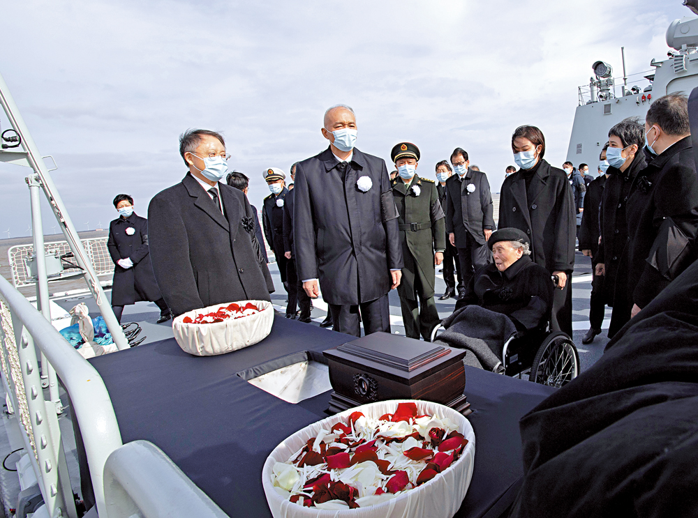 【大公報訊】據新華社報道:遵照江澤民同志及其親屬的意願,敬愛的江澤民同志的骨灰11日在長江入海口撒入大海。受黨中央委託,中共中央政治局常委、中央書記處書記蔡奇等領導同志和江澤民同志的夫人王冶坪等親屬護送骨灰撒放,以最崇敬、最莊嚴的方式,表達對我黨我軍我國各族人民公認的享有崇高威望的卓越領導人,偉大的馬克思主義者,偉大的無產階級革命家、政治家、軍事家、外交家,久經考驗的共產主義戰士,中國特色社會主義偉大事業的傑出領導者,黨的第三代中央領導集體的核心,「三個代表」重要思想的主要創立者江澤民同志的深切哀思和無限緬懷。江澤民同志是徹底的唯物主義者。他生前留下意願,自己的骨灰撒在長江和大海。江澤民同志把一生毫無保留地奉獻給了祖國和人民。揚州是江澤民同志的故鄉。揚州艦以最高禮儀送別這位卓越領導人。江澤民同志的親屬捧護着骨灰登上揚州艦,在軍艦甲板上含淚告別,將骨灰和花瓣撒向江海。