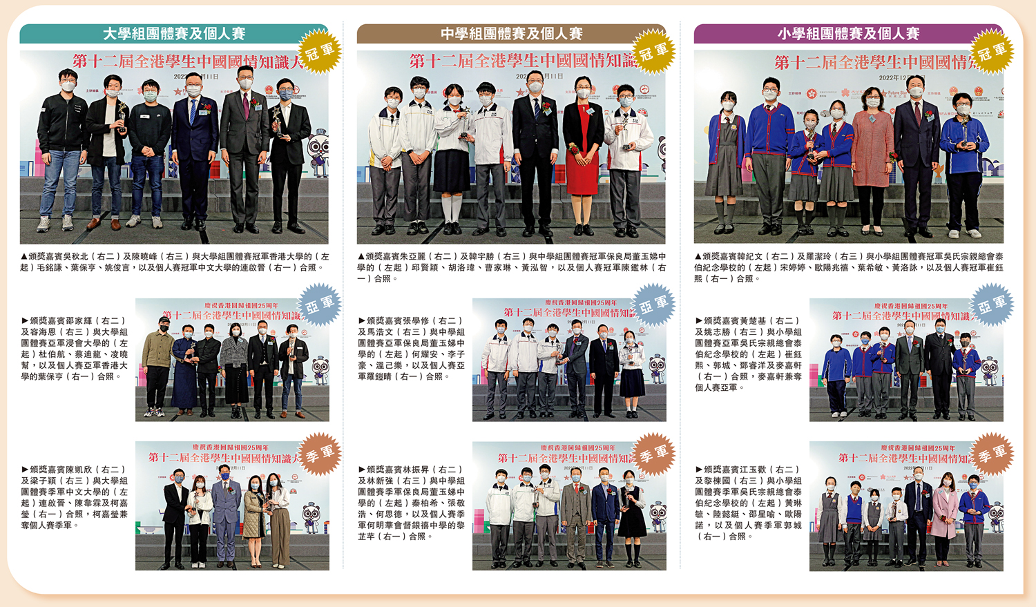 除了讀小五的希敏,其餘兩位同學已非首次參加比賽。洛詠透露,去年取得季軍,今年自己付出更多努力,可以拿到冠軍獎盃,很是興奮。透過比賽,他們認識更多祖國的歷史,有助培養國民身份認同感。而團體賽最重要的是團隊精神,所以他們早就做好合作分工、互相幫助,友誼亦因此更牢固。希敏相信,今次比賽的珍貴經驗,對未來再參加同類活動有很大幫助,將來可做得更好。