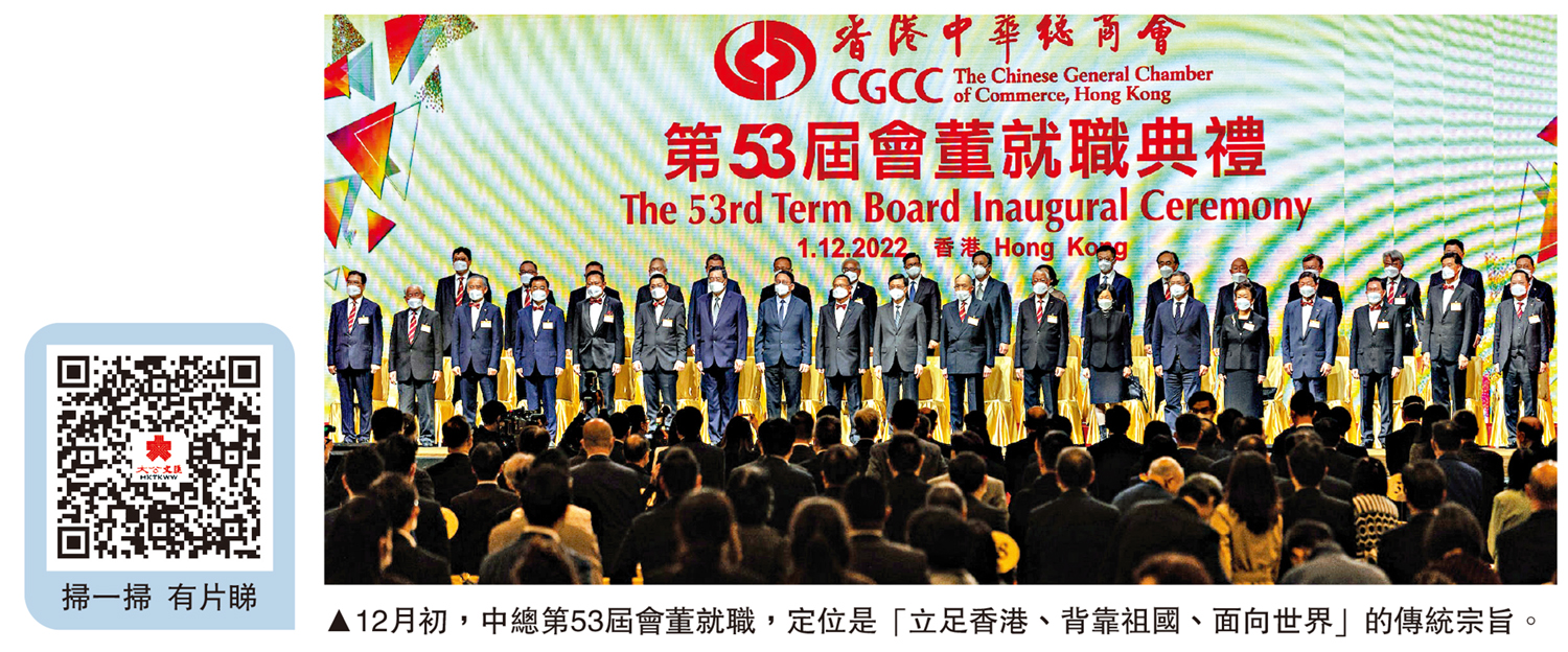 他坦言,以前黑暴事件及新冠疫情,令部分外國政府和企業對香港有誤解,但其實香港一點也沒有變,仍是全世界最自由經濟體,堅持法治,又是國際金融中心和貿易中心。因此,中總同仁要積極走出去,以實例向外國說明香港情況,亦要用熱情將外國朋友請進來,到香港親身感受真實情況。