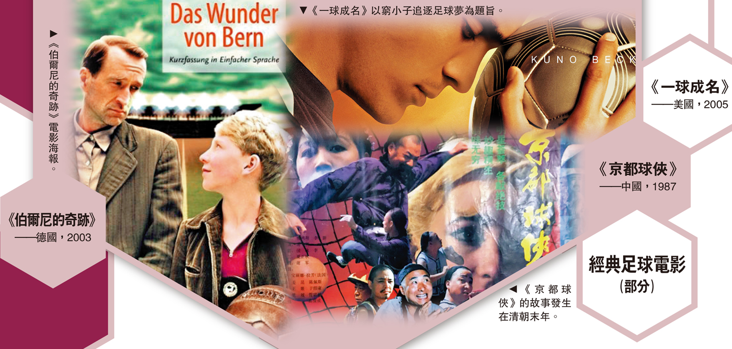 《一球成名》講述一個墨西哥窮小子隨家人偷渡到美國,其足球天賦被英國球探發現,歷盡苦難,他終於成功效力英超球隊。《伯爾尼的奇跡》講述的則是1954年世界盃,聯邦德國隊小組賽3:8慘敗於匈牙利,但在決賽中以3:2力克匈牙利,捧得世界盃冠軍的故事。