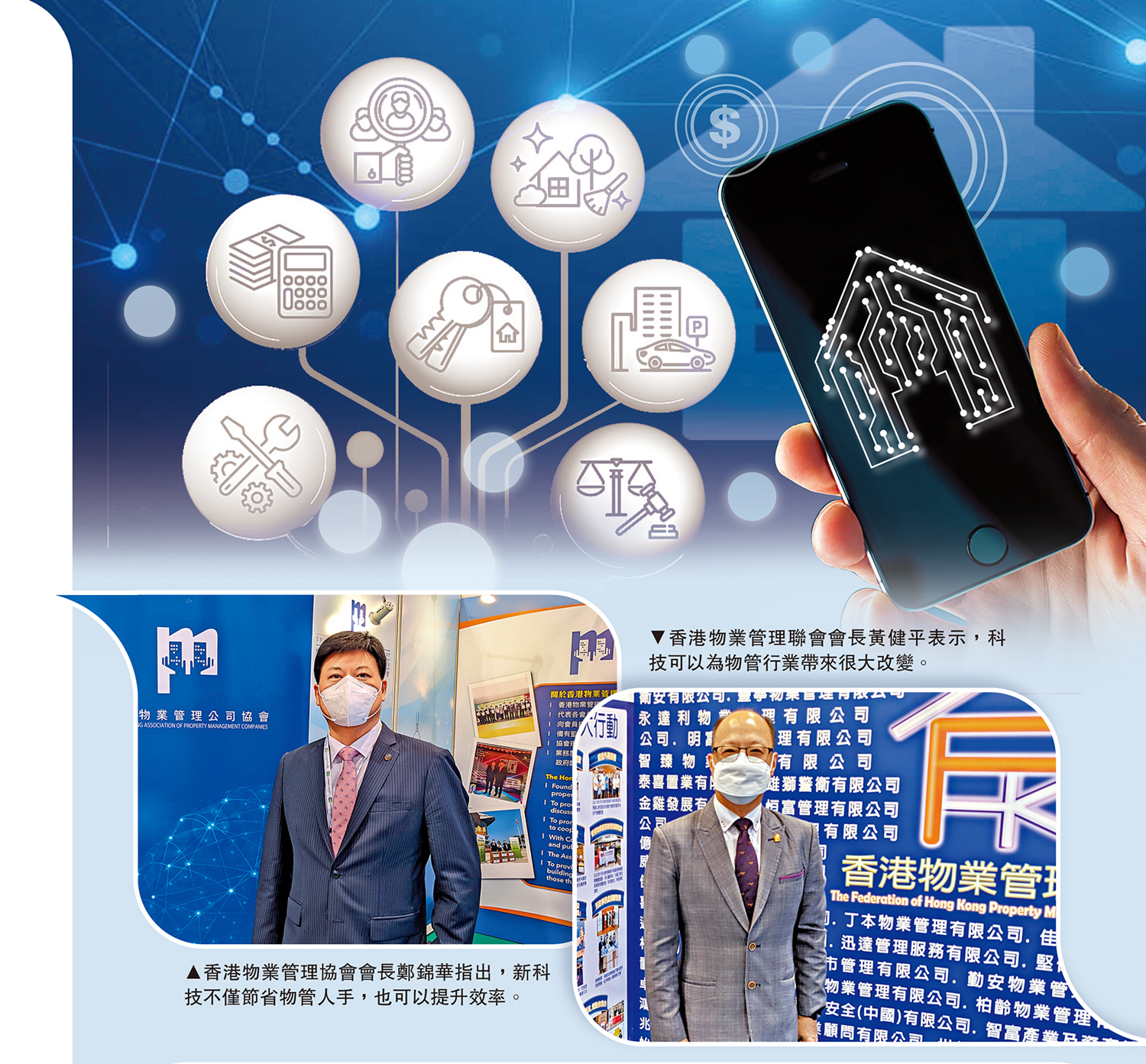 疫情雖然帶來很多困難,但對行業來說也是機遇,鄭錦華透露,疫情下更多業主願意接受科技,可以為物業引入機械人、感應器、非接觸式器具,以減少人與人之間的接觸。而新科技不僅節省人手,也可以提升效率,如該集團管理的沙田第一城引入無人機觀察外牆情況,改變以往預約單位、搭棚的時間,由過去需要一個多月才能出報告,大幅減省至兩星期內。