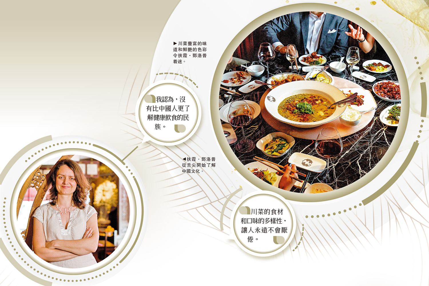 另外,她認為中國文化強調食物與藥材、飲食與健康的密切關係,「好的食物」總是與健康、調和以及感官刺激有關,中餐幫助她更好地保持自己的身體健康,這也是在她看來中西飲食最大的區別之一,「我認為中國在這方面遠遠領先於西方。」