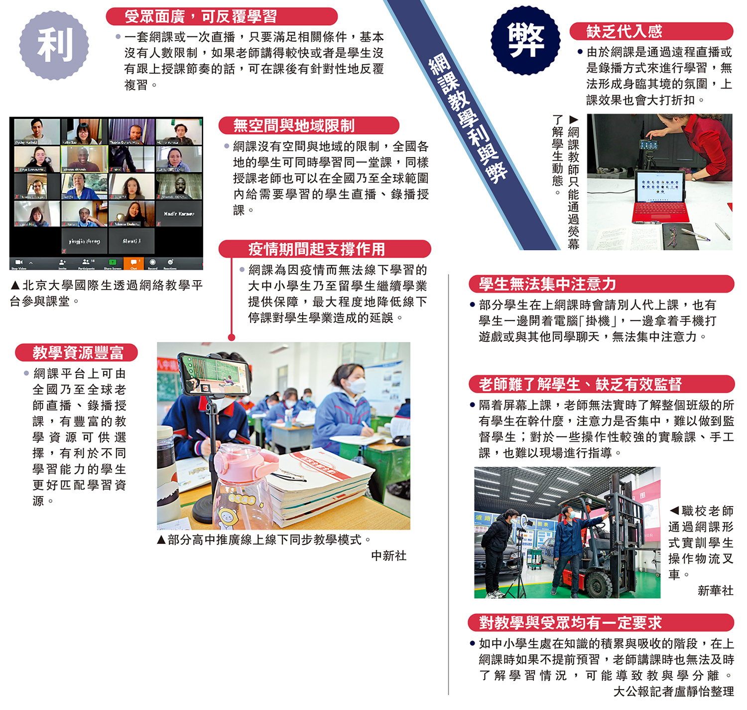 •網課平台上可由全國乃至全球老師直播、錄播授課,有豐富的教學資源可供選擇,有利於不同學習能力的學生更好匹配學習資源。