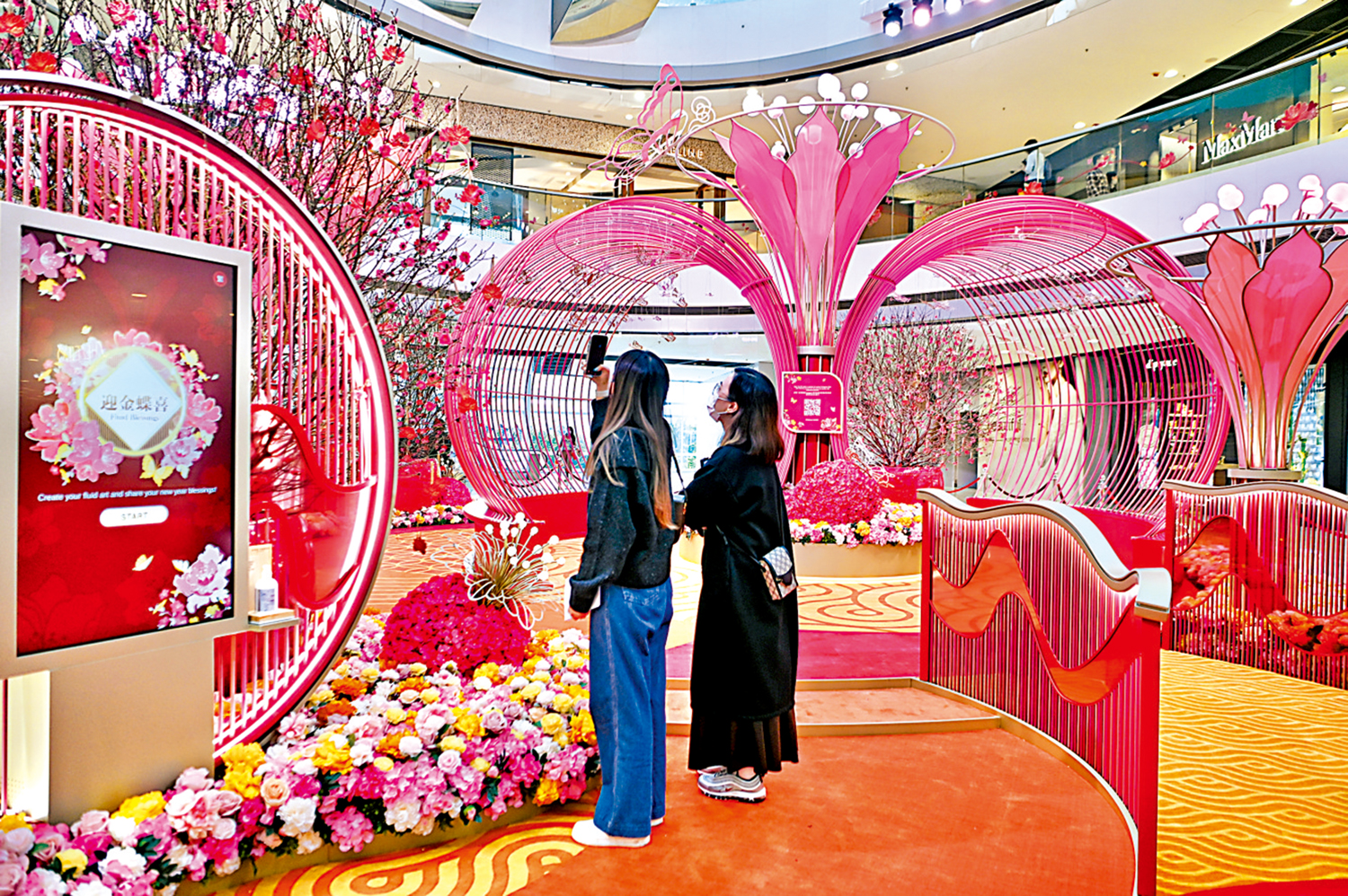 中環IFC商場以花開蝶舞為靈感,即日至二月五日在一樓中庭設置「彩蝶錦簇庭園」新春花藝裝置。該裝置還設兩大互動元素──「迎金蝶喜」數碼祝賀互動體驗、「彩蝶迎春」Instagram限時動態濾鏡,讓大家與摯親分享新春喜悅。\中新社