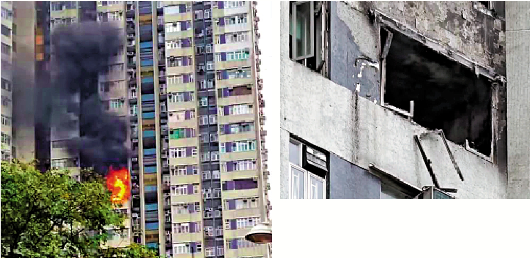 事發現場前日發生大火,濃煙沖天,大批居民需疏散,幸無人死亡。消防將火救熄後單位外牆被嚴重熏黑,窗框燒毀變形,並波及附近單位,遭爆竊時現場仍有大攤積水未清理,戶主蒙受雙重損失,可謂禍不單行。