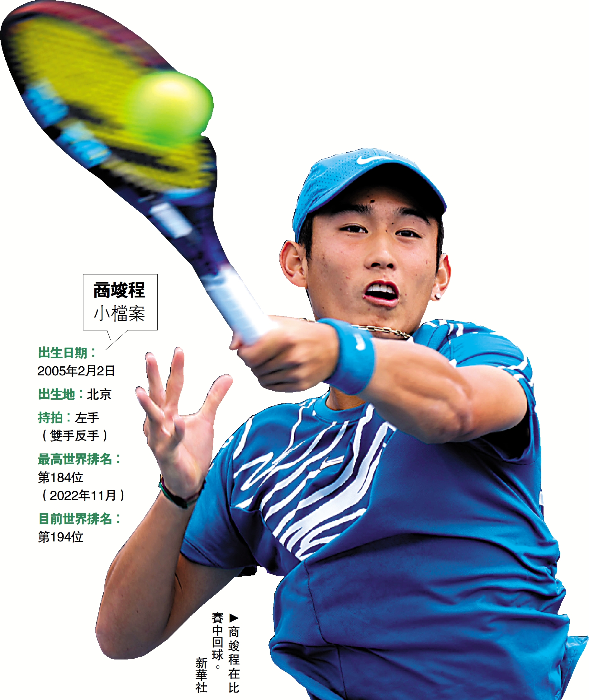 【大公報訊】綜合中新社、記者梁潤森報道:當地時間16日,在澳網2023男單首圈比賽中,17歲的中國新星商竣程以6:2、6:4、6:7(2)、7:5擊敗德國人奧特,職業生涯首次出戰大滿貫正賽旗開得勝,這也是公開賽年代以來,中國內地男球員澳網正賽首勝。