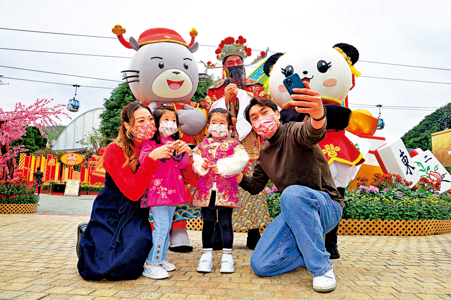 疫情三年,海洋公園本周四(年廿八)起一連18天,復辦慶賀農曆新年活動,與市民及遊客喜迎兔年,包括有達摩造型的小兔列隊恭候遊客,亦有「兔迎新歲市集」,攤檔展示不同可愛造型的氣球和售賣不同口味的波板糖。到場遊玩的小朋友更可以化身成萌兔,跳入「蹦蹦彈跳屋」盡情玩樂放電,精靈地迎接新一年。