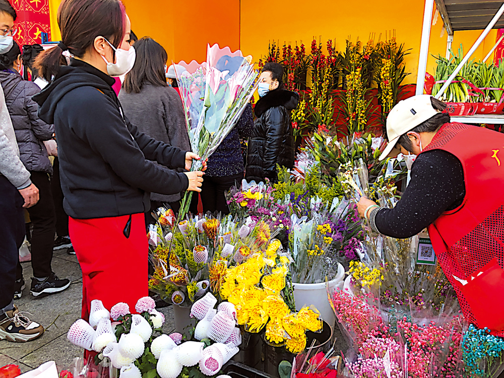 市民高女士稱:「各大花市都吸引大量市民遊客前來賞花買花,喧鬧的人聲,久違的煙火氣,期待新一年春暖花開!」