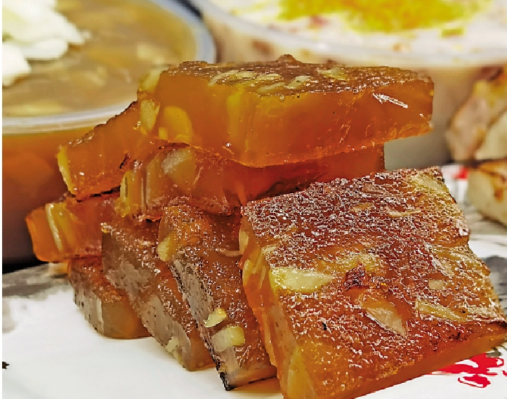賀年食品中,蘿蔔糕味道鹹香,馬蹄糕則甜口。比起蘿蔔糕的製作,馬蹄糕簡單一些。