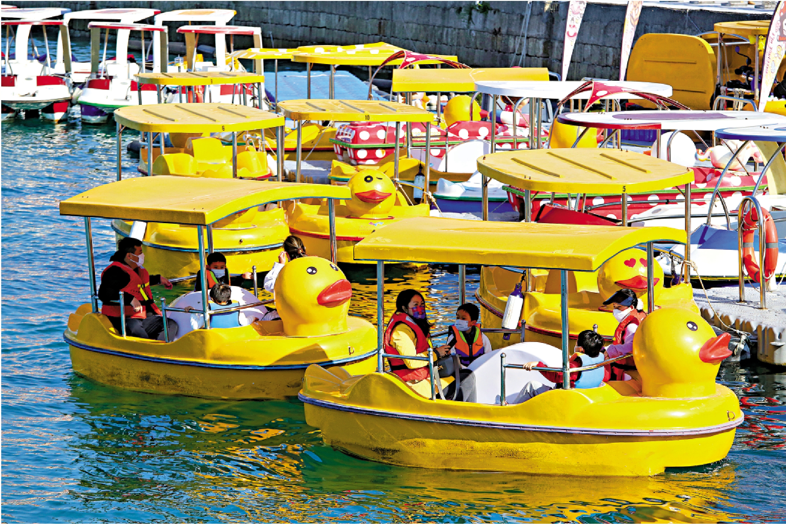 大公報記者日前於中午時段到海濱公園,看到不少家長帶同小朋友往踏水上單車「放電」。上船前,乘客須先穿好救生衣,不少小朋友未登船先興奮,不時追問父母「到我未?」