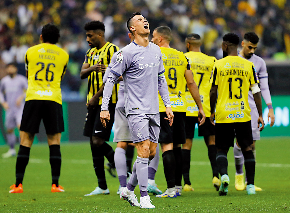 【大公報訊】據ESPN FC報道:C朗拿度在沙特阿拉伯的第2場正式比賽仍「食白果」,所效力的艾納斯在沙特超級盃4強被淘汰之餘,自己在賽後亦負傷離場,還遭主帥魯迪加西亞批評錯失入球機會,新事業似乎開展得絕不順利。