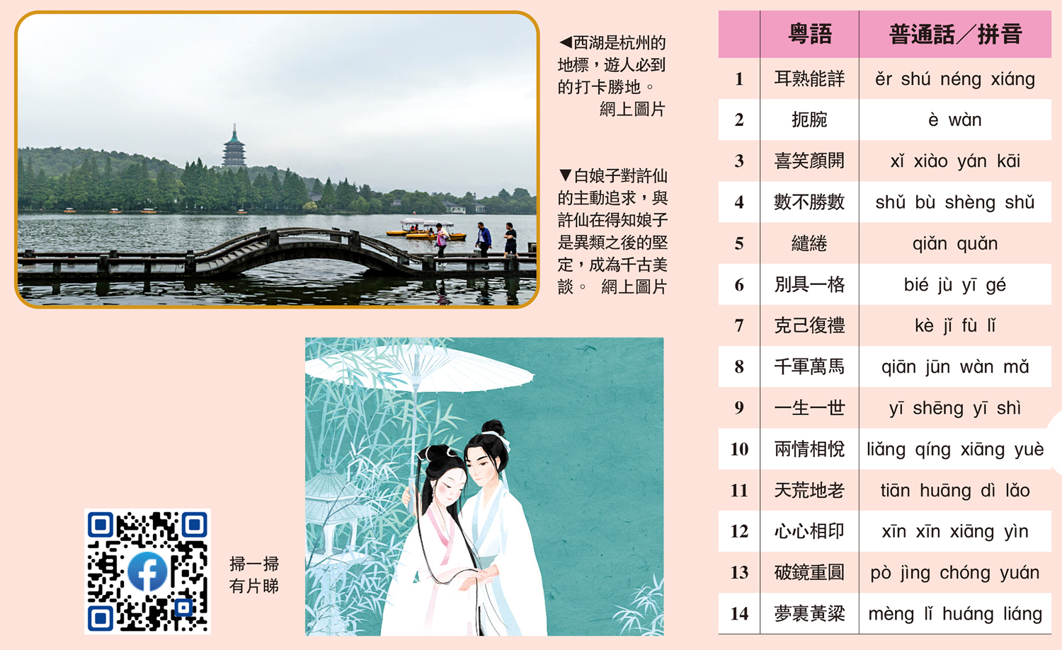 因此,今天的青年男女,總是嚮往執子之手,與子偕老的愛情,海誓山盟總有別樣的魅力。沒在一起的時候想着能夠相愛,相愛之後想着一生一世yī shēng yīshì,但兩情相悅liǎng qíng xiāng yuè容易,天荒地老tiān huāng dì lǎo卻不容易。在愛情裏受傷的人們,總是走到西湖邊,留下被現實折磨的淚水與關於過往的痛訴。在偌大的世界裏,相遇不容易,心心相印xīn xīn xiāng yìn更是不易,當愛情破裂,最好是奔赴明天,破鏡重圓pò jìng chóng yuán終究是夢裏黃粱mèng lǐ huáng liáng,難以作數。悲傷的時候,我們盡可以哭泣,然後迎接下一個天亮,下一場旅行。